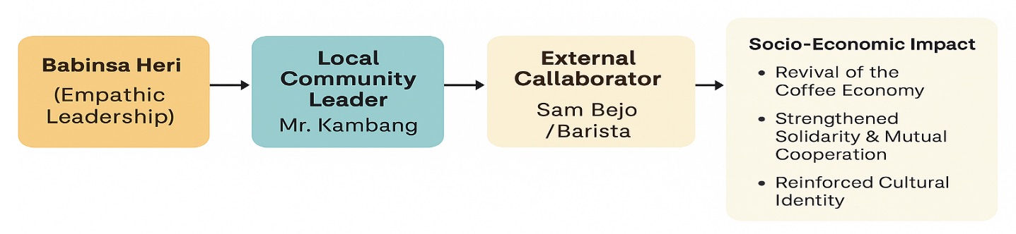 The positive outcomes of this transformation extended beyond economic improvement to the reinforcement of social and cultural life. The tradition of gotong royong was revitalized as solidarity among farmers increased, a phenomenon often accompanying economic revitalization in rural contexts. Moreover, the Bersih Desa ritual acquired renewed meaning as a collective expression of gratitude for successful coffee harvests, strengthening a cultural identity connected to Tengger traditions. Thus, social change in Taji Village emerged as the result of empathetic leadership by Babinsa Heri, the exemplary role of local figures, and collaborative partnerships, positioning it as a coffee-based model of transformation that unites economic, cultural, and social solidarity dimensions (Figure 15).