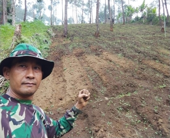 The Head Sergeant Heri Purnomo in Perhutani’s Land, giving a Model for Farmers in Taji Village